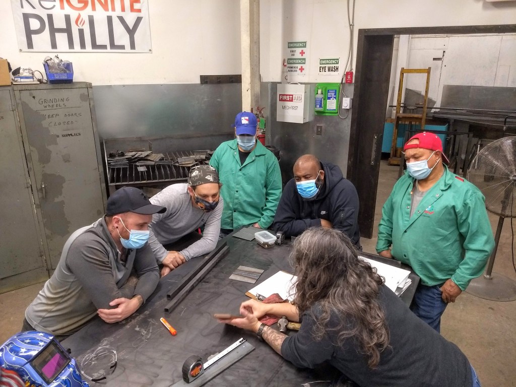 Since 2016, Reignite Philly has educated and trained the next generation of metal fabricators and welders to the benefit of the individual, the class, and the community. We offer affordable welding training in a challenging yet supportive environment, giving welding opportunities to folks who wouldn’t otherwise have them.